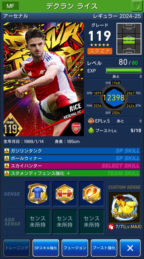 今回、ナショナルライスのバッジを2枚持っていたので30%のリトライ確率があるのでフュージョンしました。結果よければレギュラーライスがディフェンス顔面もちなので合わせたいと思います。