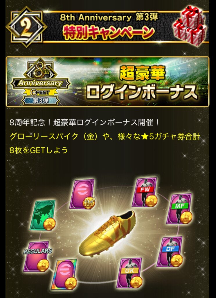 内容は結構嬉しいものが多く、特にログボが豪華です。例年通りキンスパももらえますし。