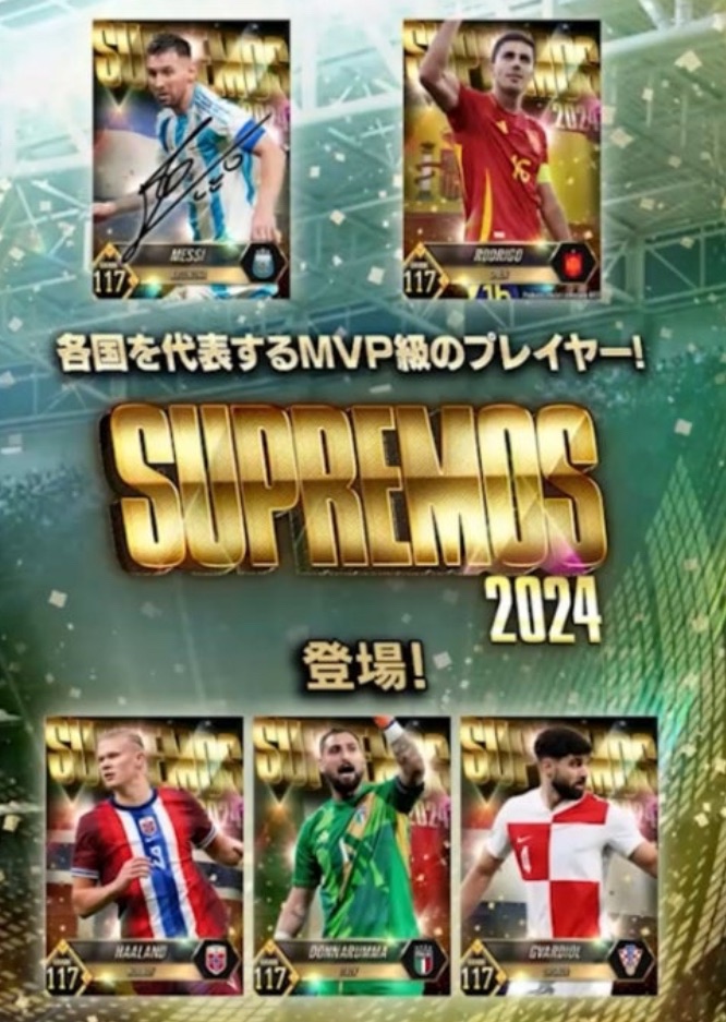 今年もハーランドはストライカーで排出されているのですがガチャセットでも近々にきているのをふまえると僕の予想は「メッシ」。メッシはもうないんじゃない!とも思いましたがカスタムできてないのと代表で今も活躍しており、なんといってもウイコレアンバサダーのような契約をしているので「ここでメッシ使わないの!?」って感覚になりますね。ケインか迷いましたがレギュラーSTRIKERSできたのを考えると、おそらくCF寄りなスキル構成のメッシがくるのではないかと予想です。