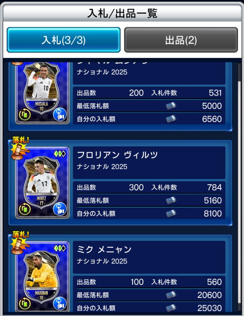 以前は①の育てたいだけでオークションをしてましたがグローリーをあまり持ってない選手を落としても使う機会が少ないなんてこともあり、今後は①、②はマストで③に関してはここぞの時は大枚叩く形で挑んで行きます。