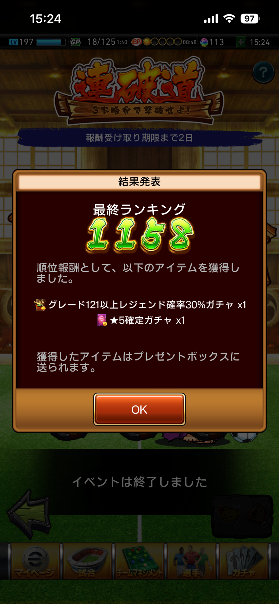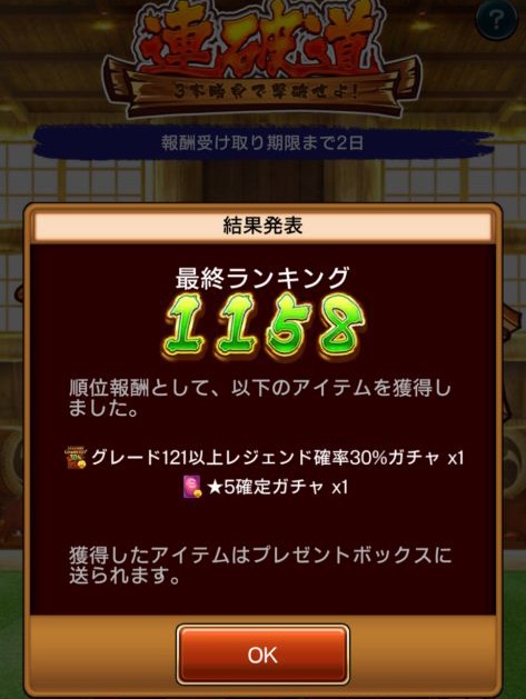 連覇道の結果、、、ナイスです👍