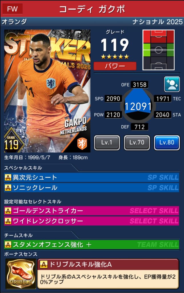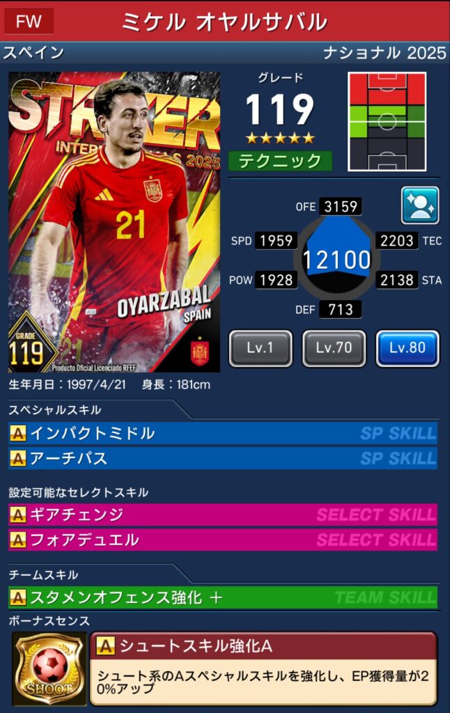 今回の選手たちはスキル構成が難しい選手もいますがセレクト選手もOFE値が3000は超えてますしスキル発動も悪くないので攻撃的にいけるメンバーなのではないのでしょうか。