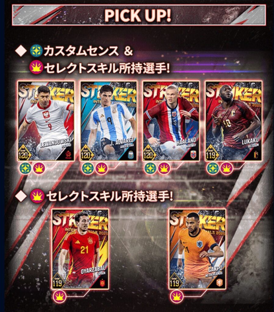 カスタムに常連のレヴァンドフスキ、ハーランドに加えフリアン・アルバレスとルカクが選ばれました。セレクトにはガクポとオヤンサバルが選出です。