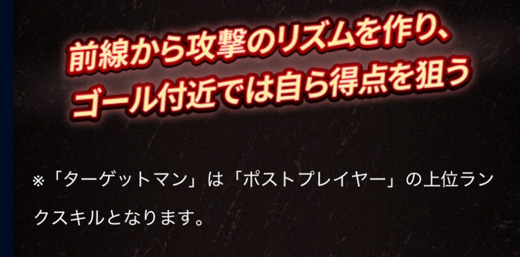 今回、ポストプレーヤーの更新でターゲットマンが新スキルとして登場しました。